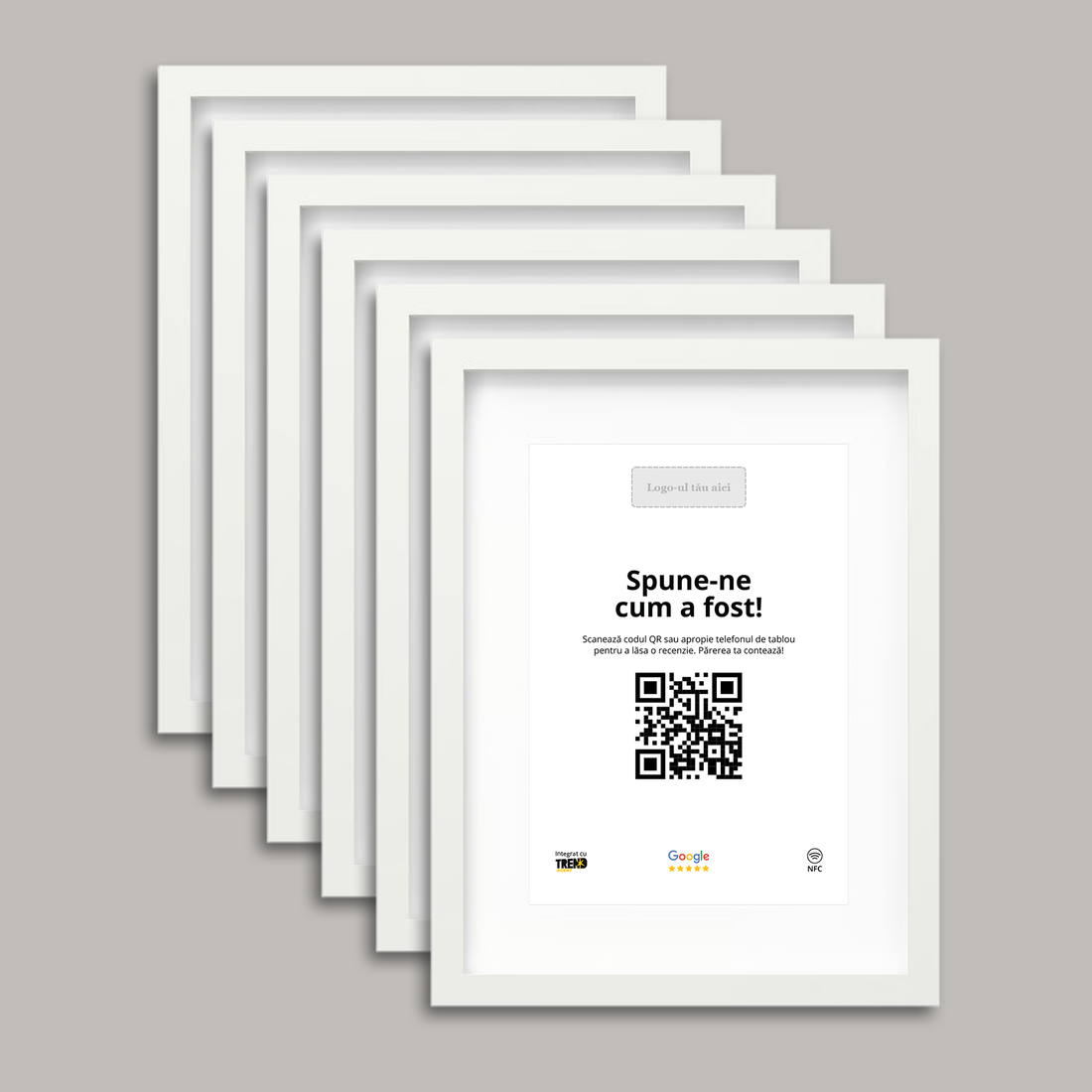 Pachet 6 Rame Albe Personalizate cu NFC și cod QR pentru Google Reviews