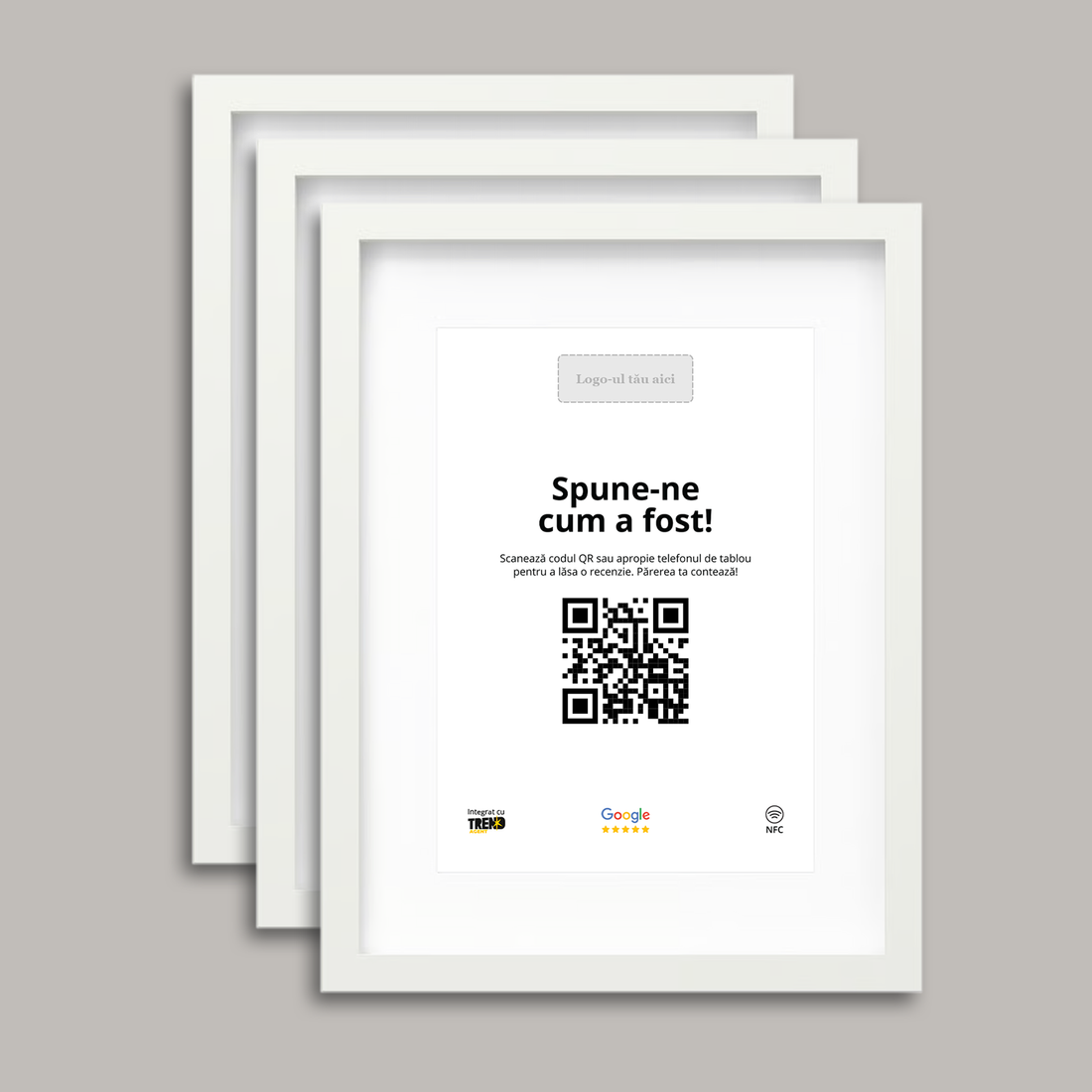 Pachet 3 Rame Albe Personalizate cu NFC și cod QR pentru Google Reviews