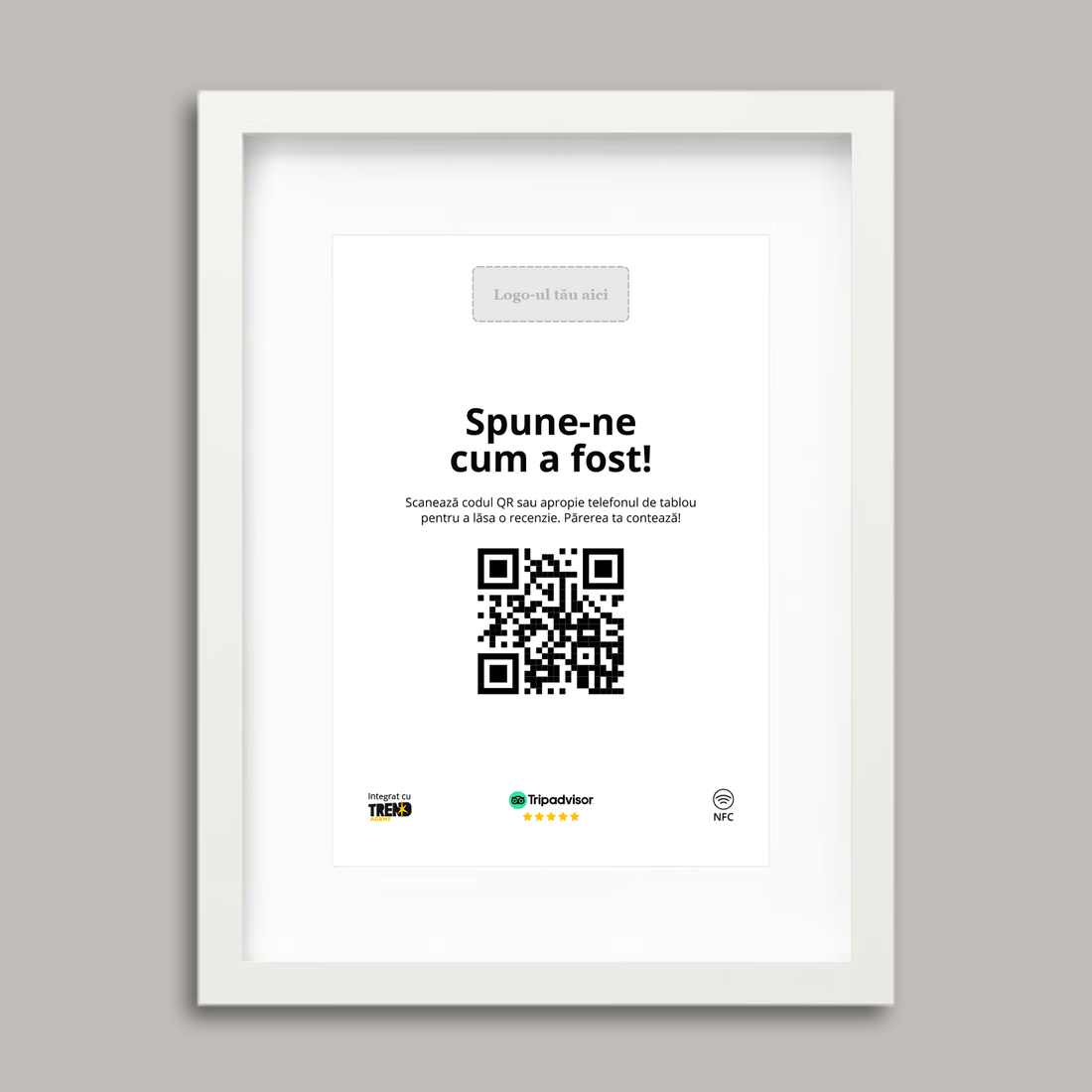 Rama Albă Personalizată cu NFC și cod QR pentru Tripadvisor