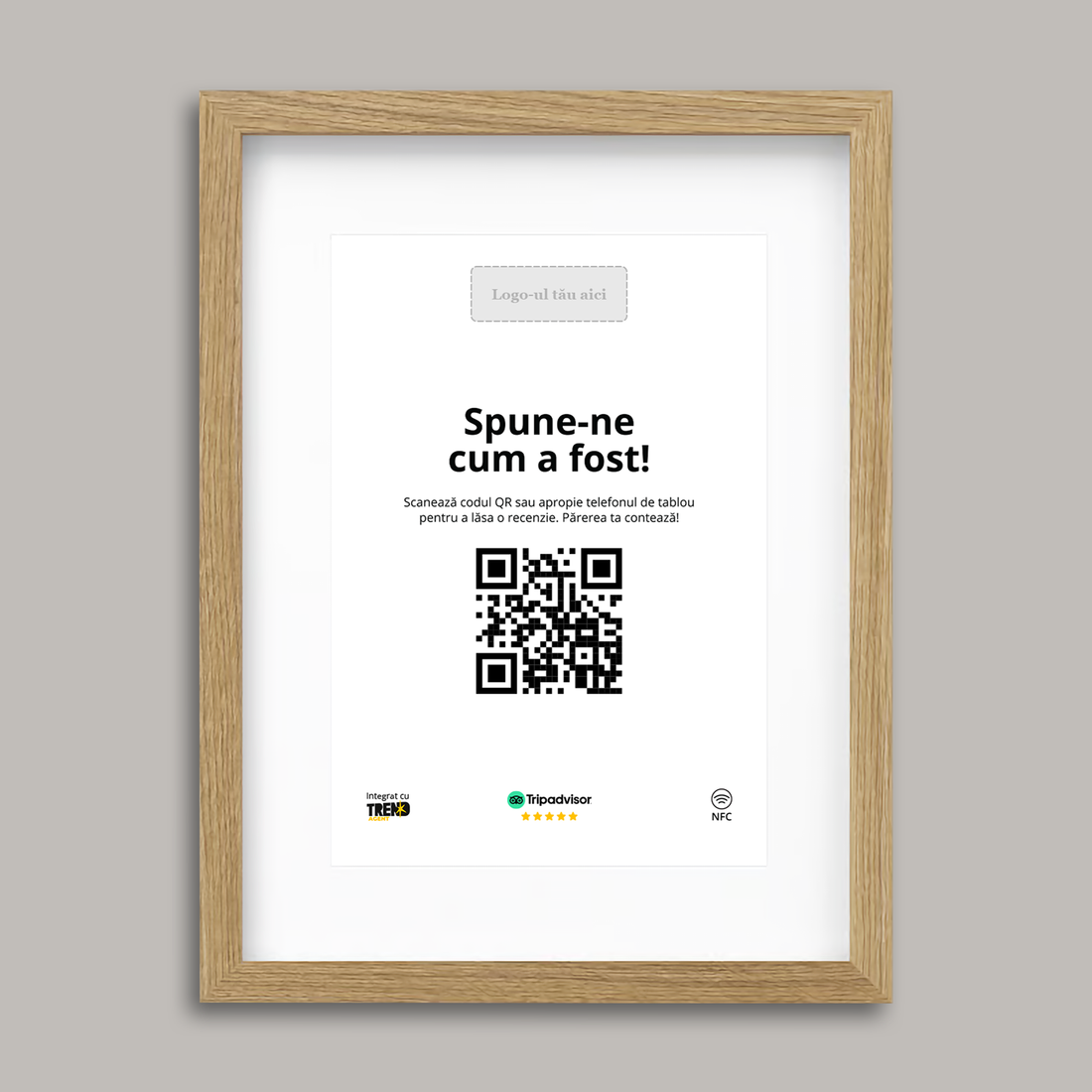 Ramă Aspect Stejar Personalizată cu NFC și cod QR pentru Tripadvisor