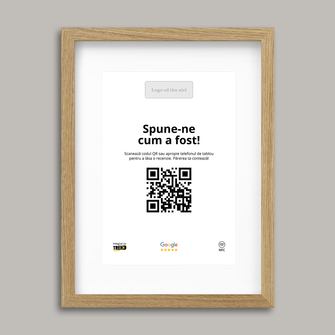 Ramă Aspect Stejar Personalizată cu NFC și cod QR pentru Google Reviews